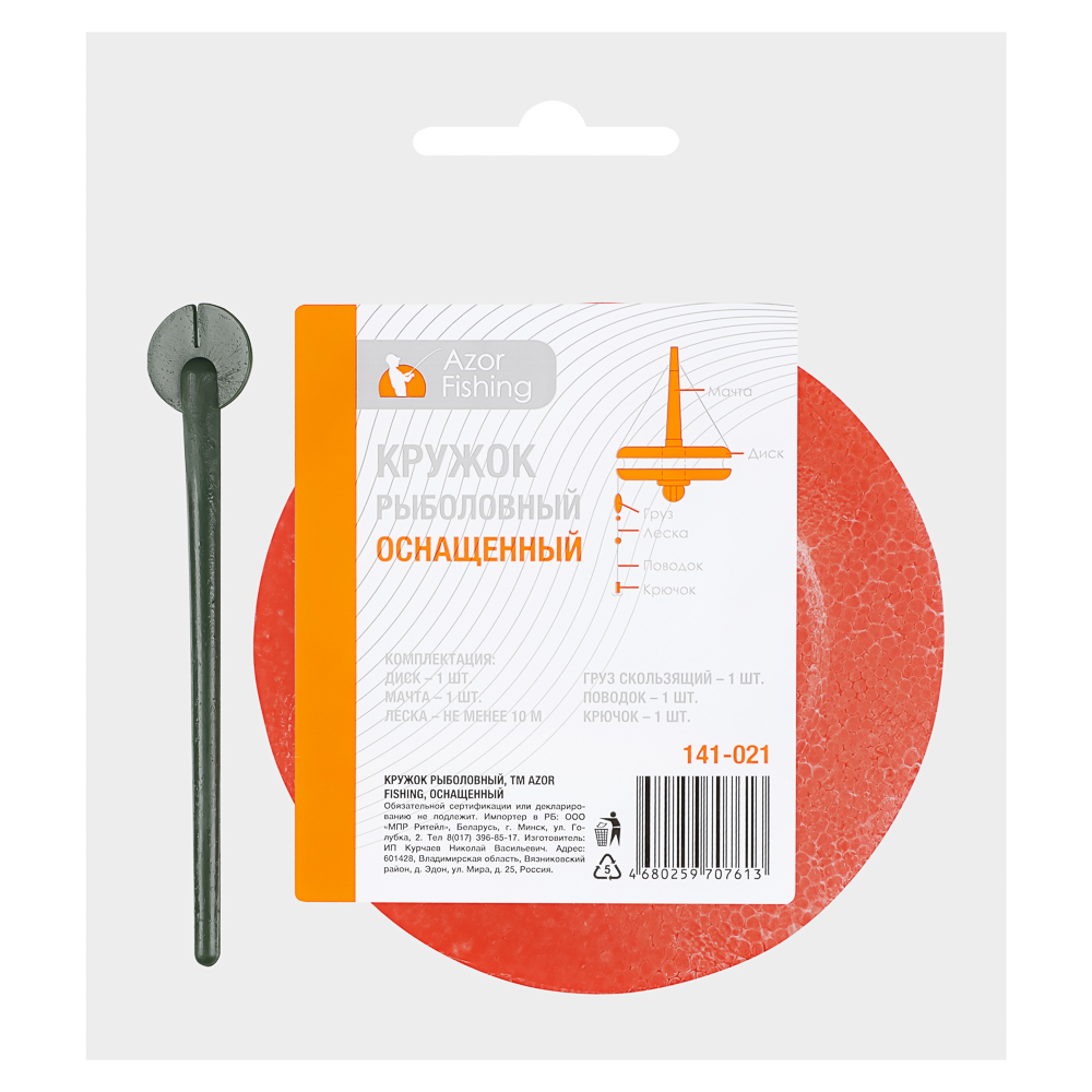 Кружок рыболовный AZOR FISHING оснащенный – это плавучая рыболовная снасть, которая отлично подходит для ловли хищной рыбы. Комплектация включает диск, мачту, не менее 10 метров лески, скользящий груз, поводок и крючок. Идеальная снасть как для новичка, так и для профессионала. Предназначена для любого типа водоема – озера, реки, пруда. Просто установите кружок в месте скопления рыбы и ждите клёва. Крупный улов гарантирован!