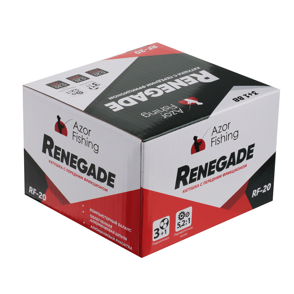 Катушка с передним фрикционом “Ренегад” от AZOR FISHING - универсальная для ловли большинства видов хищных рыб. Подходит для начинающих и опытных рыбаков. Размер 2000: можно использовать с леской диаметром 0,16-0,22 и приманками весом до 18 г. Количество подшипников 3+1: у катушки плавный ход, за ней легко ухаживать, она не боится загрязнений. Рукоятка и шпуля из алюминия: легкие, прочные, не ржавеют. Передаточное число 5,2:1 - катушка подходит для большинства видов ловли и анимации всех приманок.