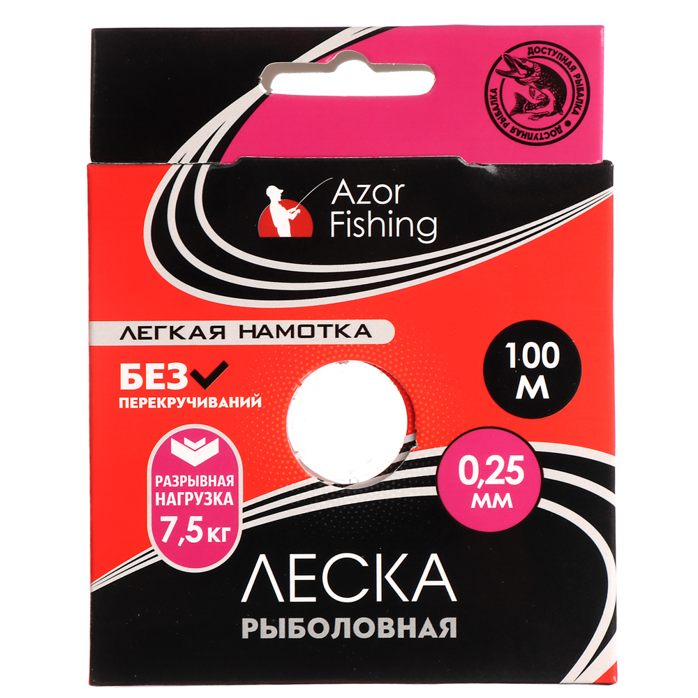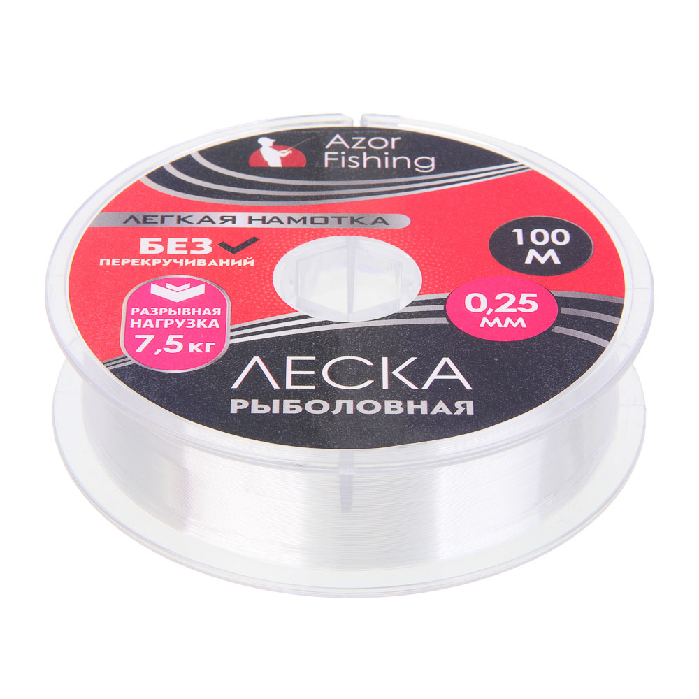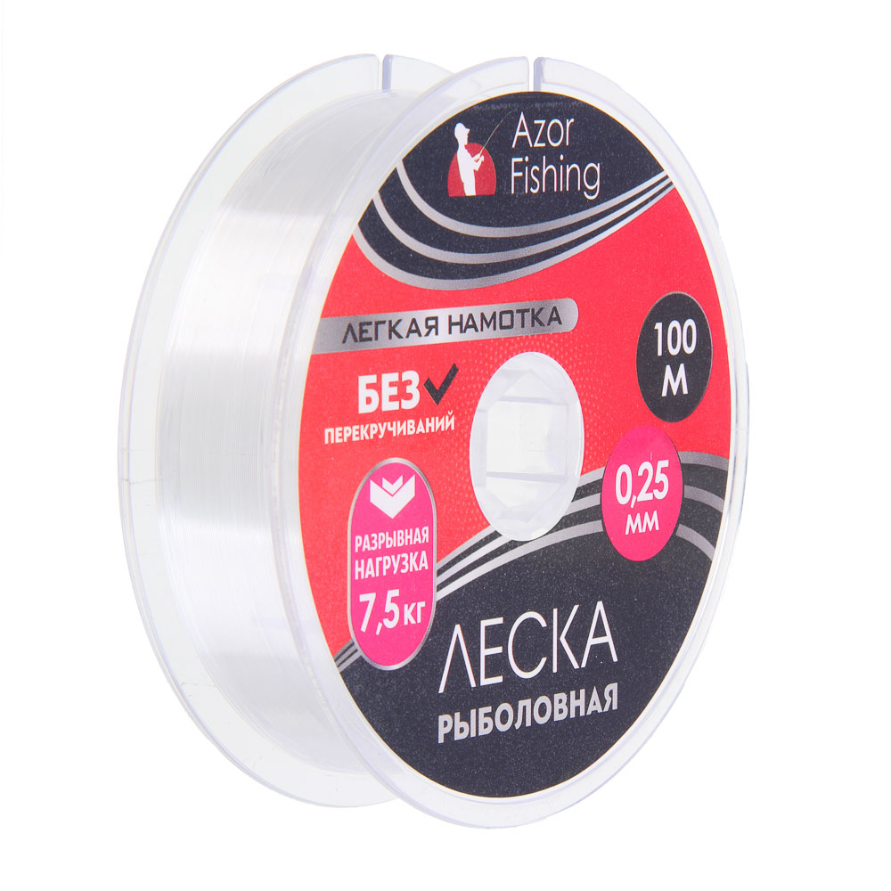 Нейлоновая леска Azor Fishing «Легкая намотка» диаметром 0,25 мм предназначена для рыбалки в небольших водоемах без течения и коряг. Рыболовная снасть выдерживает нагрузку до 7,5 кг. Ключевое отличие нити из нейлона — удобство использования. Она не перекручивается, не обрывается при сильном рывке.