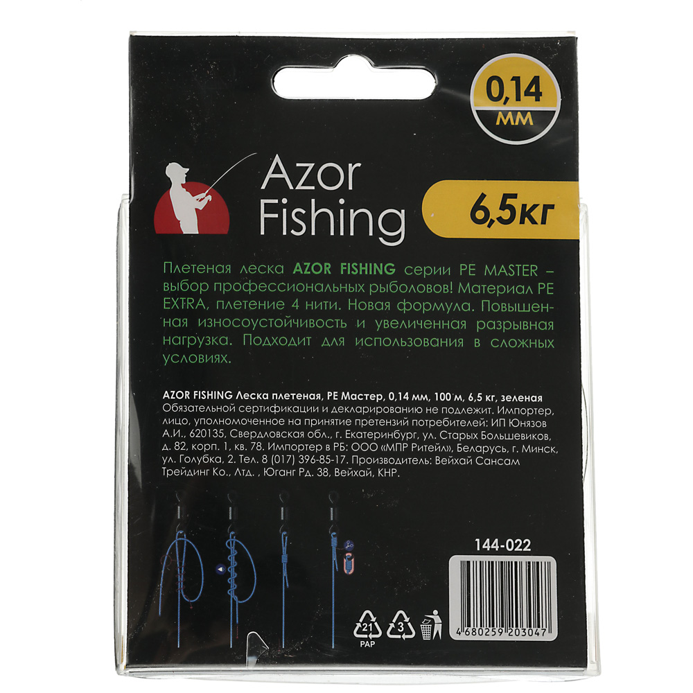 Плетеная леска Azor Fishing — высокопрочная альтернатива нейлоновой нити. Не имеет памяти, не растягивается, не рвется. Позволяет максимально контролировать приманку. Рыбак чувствует даже минимальное движение пресноводных хищников. С помощью плетенки Азор легко вытащить крупную рыбу без обрыва лески и потери оснастки. Четыре жилы создает плотное плетение, что исключает запутывание и образования «мертвых узлов». Изделие толщиной 0,14 мм выдерживает нагрузку до 6,5 кг.