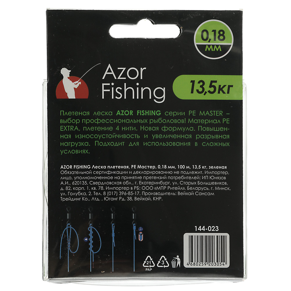 Плетеная леска Azor Fishing — высокопрочная альтернатива нейлоновой нити. Не имеет памяти, не растягивается, не рвется. Позволяет максимально контролировать приманку. Рыбак чувствует даже минимальное движение пресноводных хищников. С помощью плетенки Азор легко вытащить крупную рыбу без обрыва лески и потери оснастки. Четыре жилы создает плотное плетение, что исключает запутывание и образования «мертвых узлов». Изделие толщиной 0,14 мм выдерживает нагрузку до 6,5 кг.