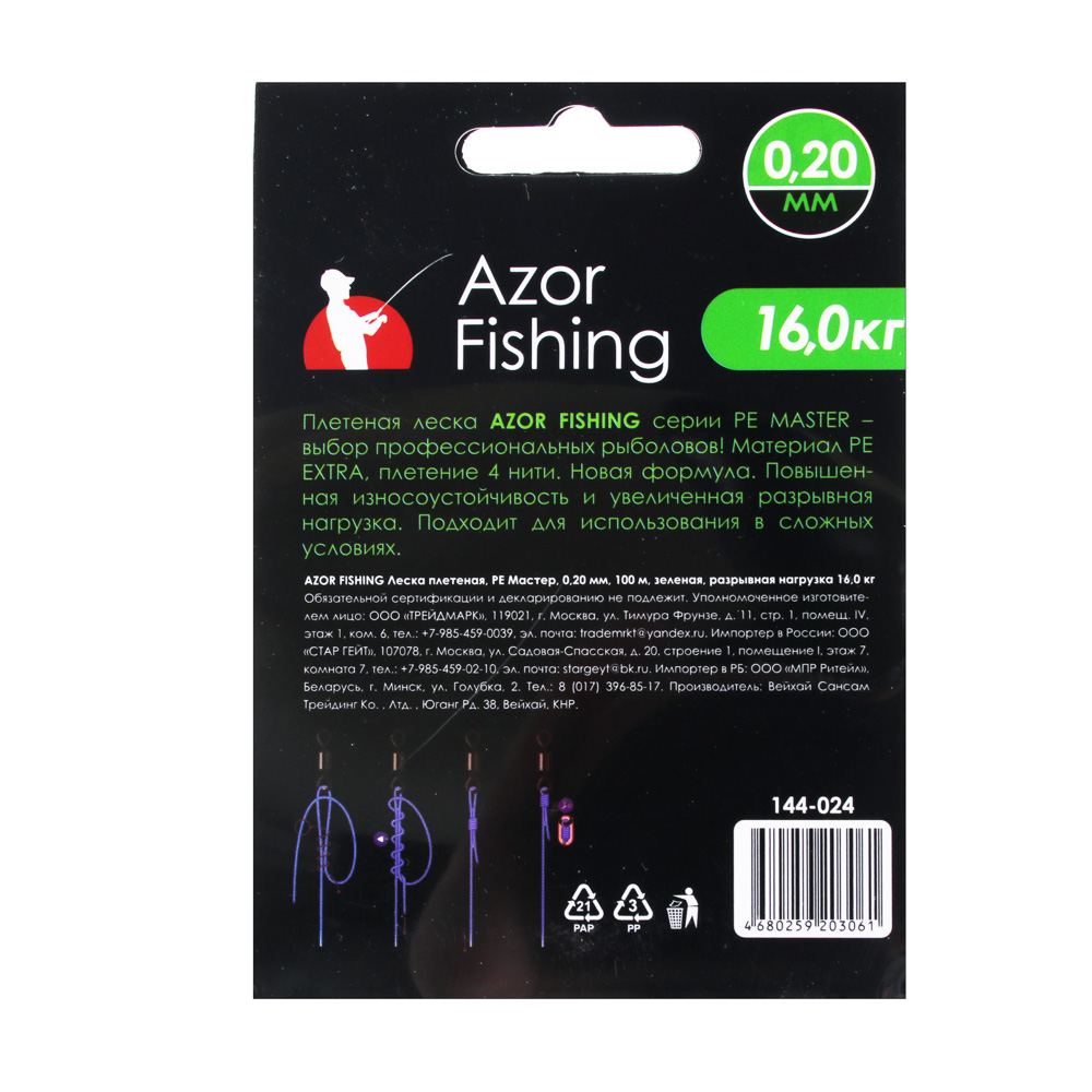 Плетеная леска Azor Fishing — высокопрочная альтернатива нейлоновой нити. Не имеет памяти, не растягивается, не рвется. Позволяет максимально контролировать приманку. Рыбак чувствует даже минимальное движение пресноводных хищников. С помощью плетенки Азор легко вытащить крупную рыбу без обрыва лески и потери оснастки. Четыре жилы создает плотное плетение, что исключает запутывание и образования «мертвых узлов». Изделие толщиной 0,14 мм выдерживает нагрузку до 6,5 кг.