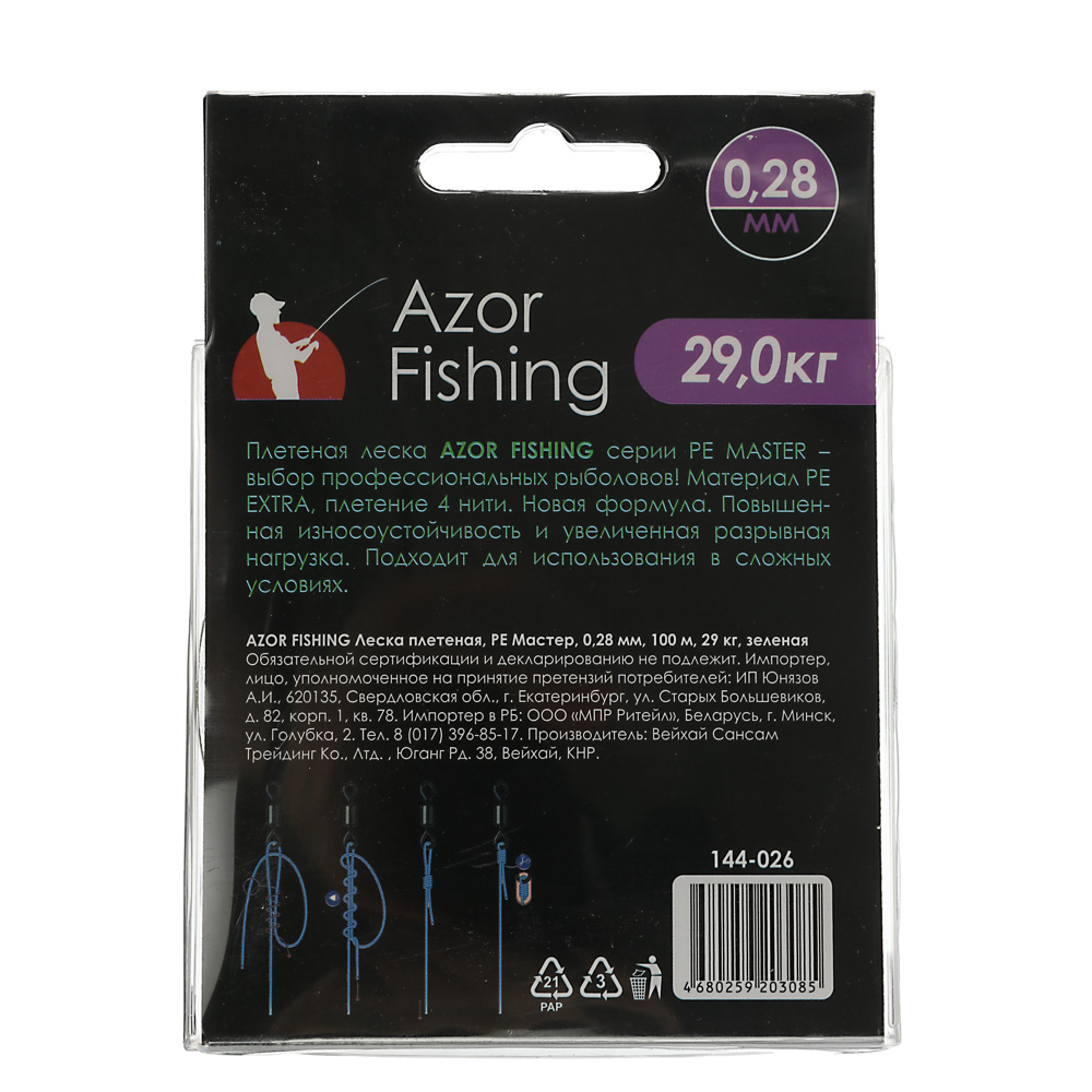 Плетеная леска Azor Fishing — высокопрочная альтернатива нейлоновой нити. Не имеет памяти, не растягивается, не рвется. Позволяет максимально контролировать приманку. Рыбак чувствует даже минимальное движение пресноводных хищников. С помощью плетенки Азор легко вытащить крупную рыбу без обрыва лески и потери оснастки. Четыре жилы создает плотное плетение, что исключает запутывание и образования «мертвых узлов». Изделие толщиной 0,14 мм выдерживает нагрузку до 6,5 кг.
