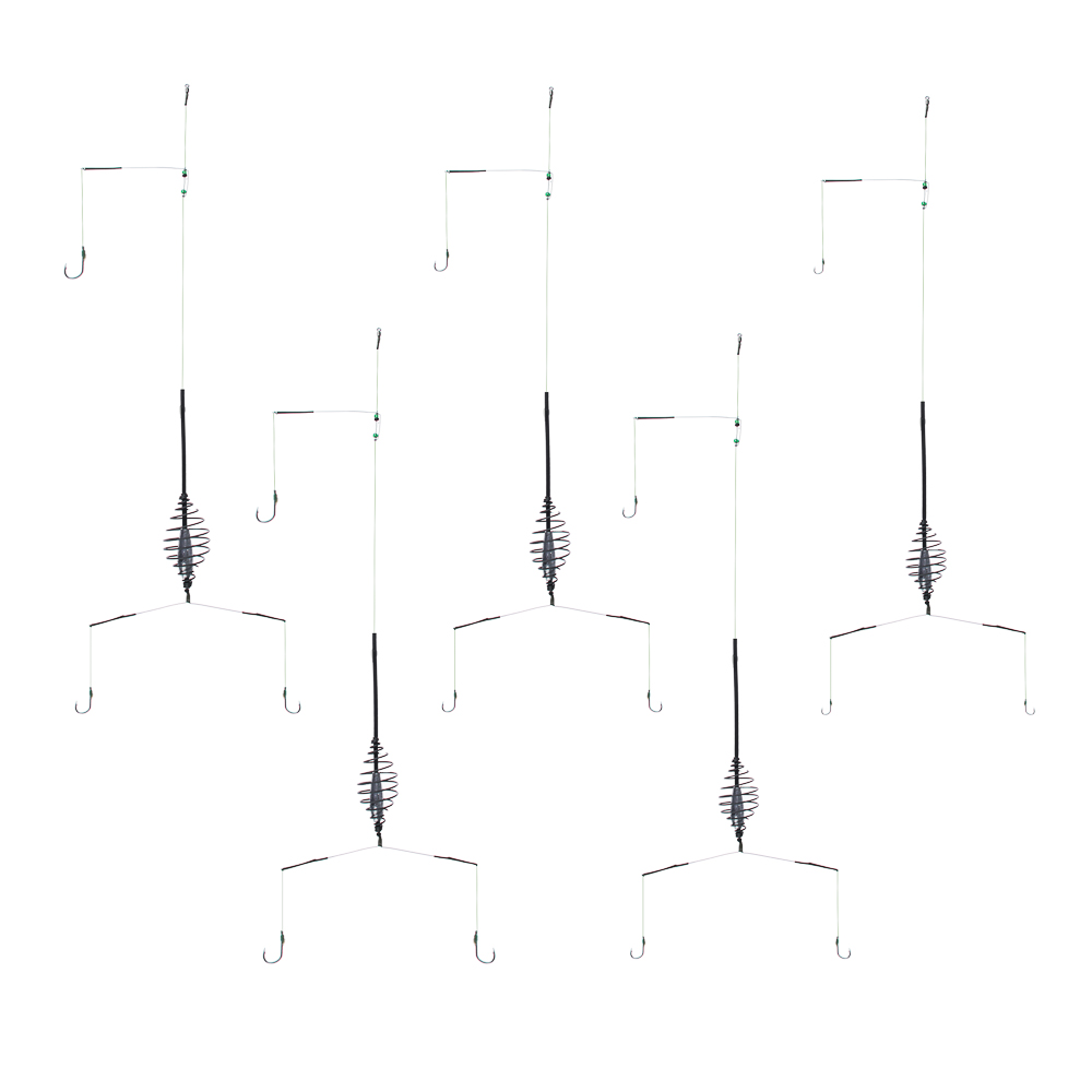 Оснастка донной удочки с кормушкой и тремя крючками Azor Fishing предназначена для рыбалки со дна с постоянным прикармливанием добычи. Фидер используется для «охоты на мирную рыбу» — леща, карпа, сазана, карася. Конструкция состоит из 3-х крючков и спиральной кормушки, обладающей отменными аэродинамическими свойствами. Такие модели хороши при дальних и точных забросах. Изделие крепится к леске с помощью карабина.