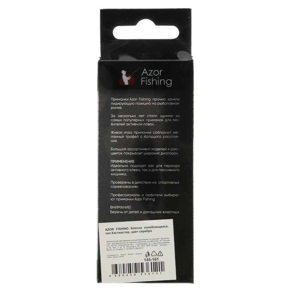 Классическая колеблющаяся блесна AZOR FISHING овально-вытянутой формой имитирующим спину рыбы. С таким устройством ловля рыбы будет происходить быстрее обычного.
