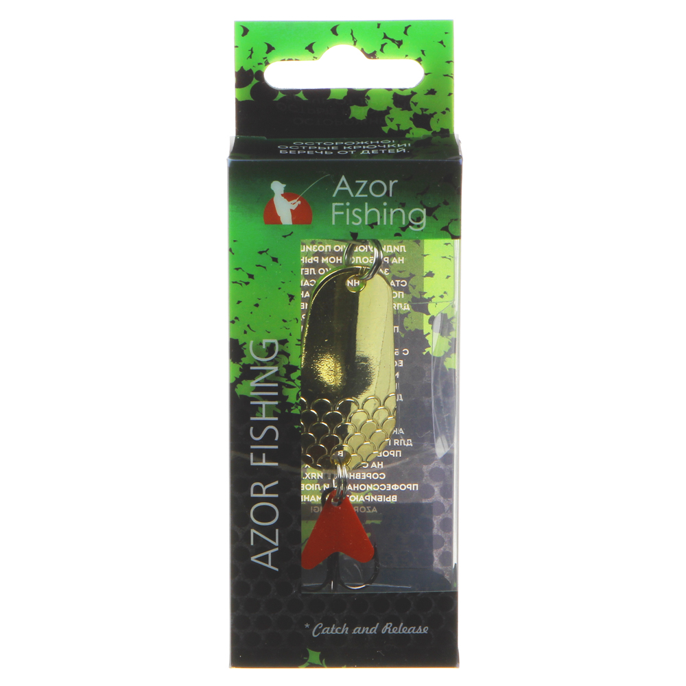 При подмотке лепесток блесны AZOR FISHING вращается и привлекает хищную рыбу акустической и зрительной игрой. С таким устройством ловля рыбы будет происходить быстрее обычного.