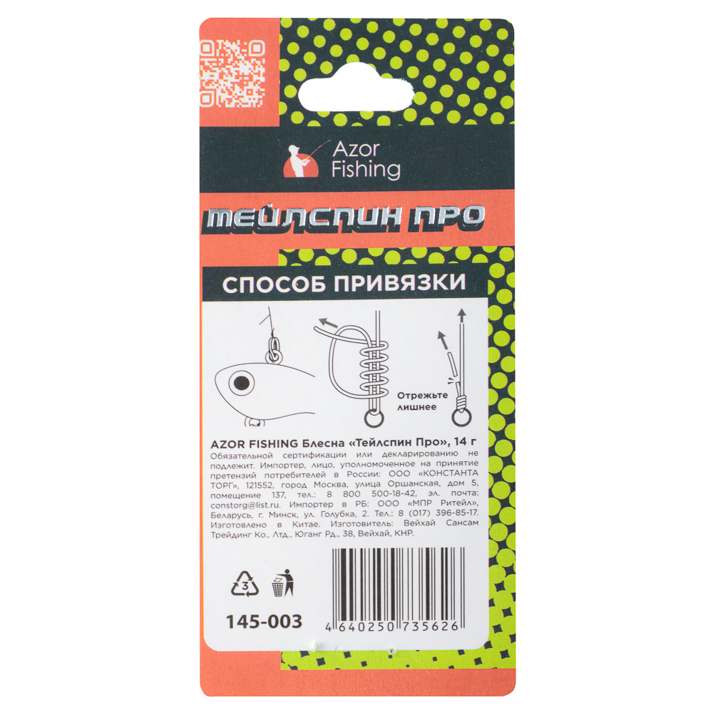 Блесна "Тейлспин Про" 14 г Azor Fishing – это искусственная спиннинговая приманка, главной конструктивной особенностью которой является хвостовое расположение вращающегося лепестка, а также наличие головного отягощающего элемента. Основное преимущество тейл-спиннера дальность заброса и разные варианты проводки. На глубине используют проводку ступенькой, давая приманке на паузах опуститься к самому дну. На мелководных участках используют самые легкие версии приманки, применяя несложные приемы анимации с равномерной проводкой и короткими остановками-паузами. Качественное лакокрасочное покрытие, оригинальные расцветки - хищник не оставит данную блесну без внимания.