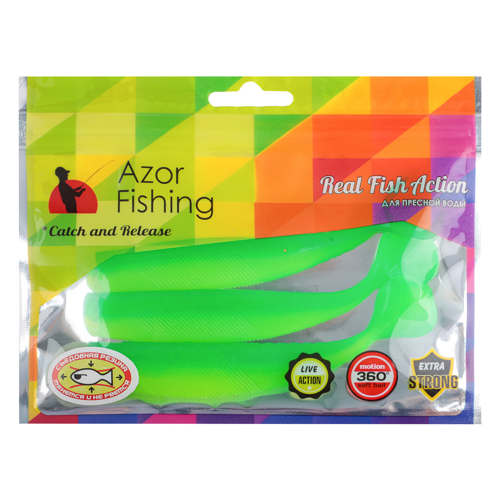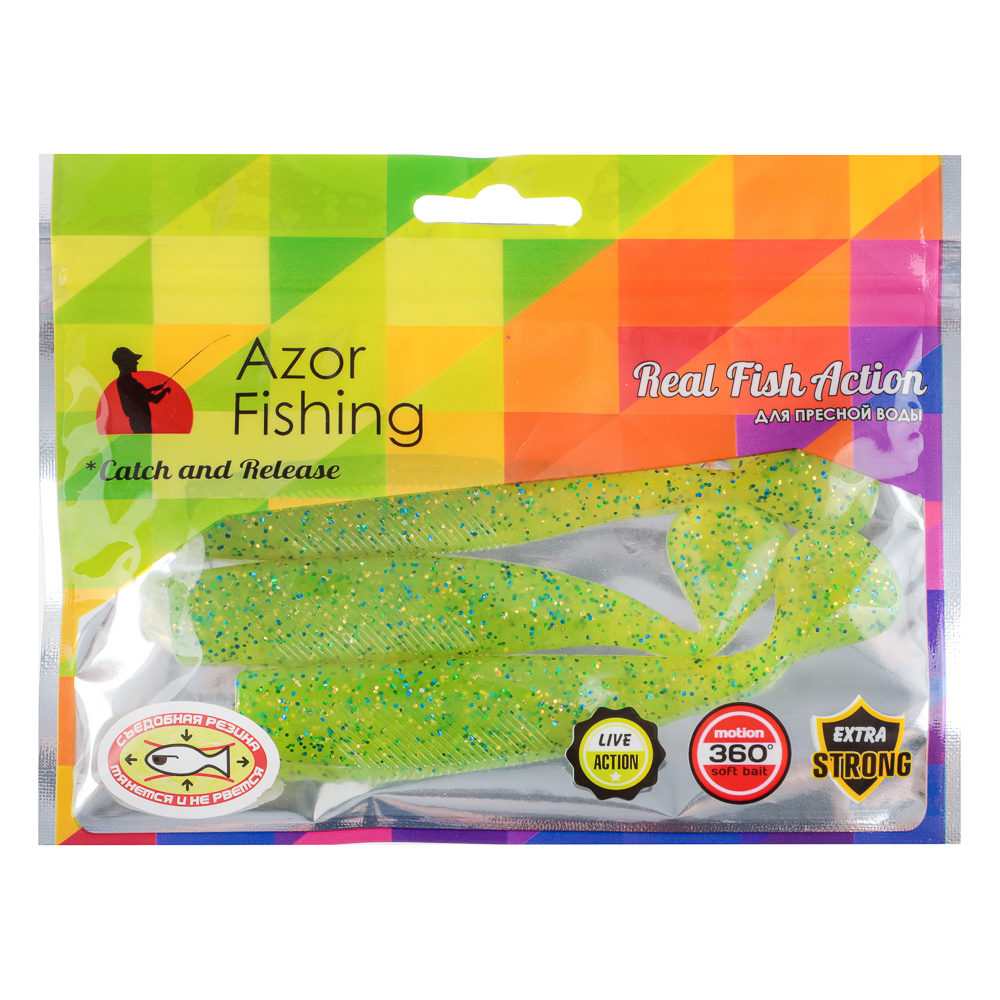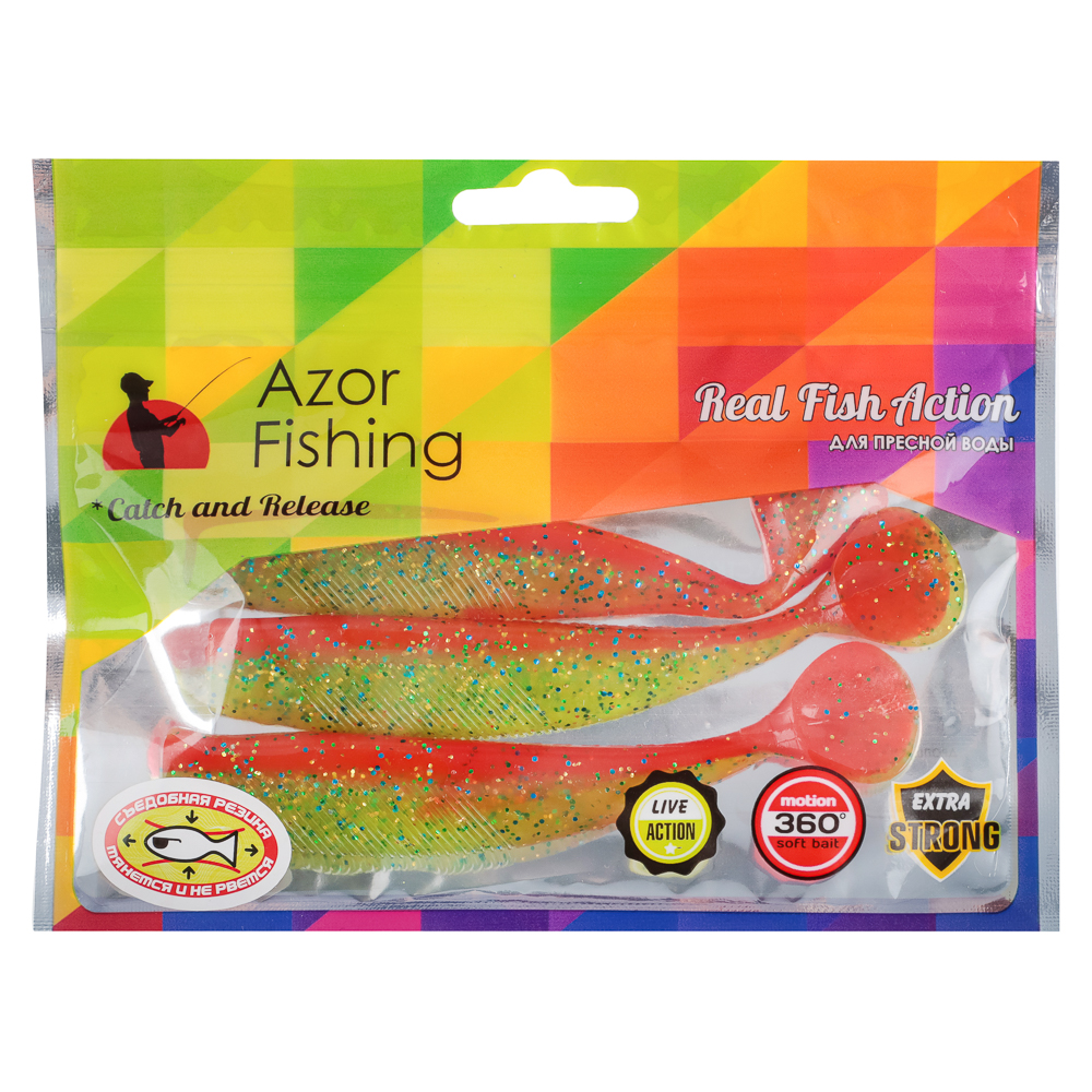 Мягкая силиконовая приманка Azor Fishing демонстрирует живую игру, вращается на 360° и всячески привлекает самую ленивую рыбу. Благодаря хорошей проходимости ей нипочем подводные зоны с корягами. Пресноводные жители любят мягкий полимер больше пластика и металла, а потому с удовольствием его глотают. Как результат — добыча не срывается с крючка.