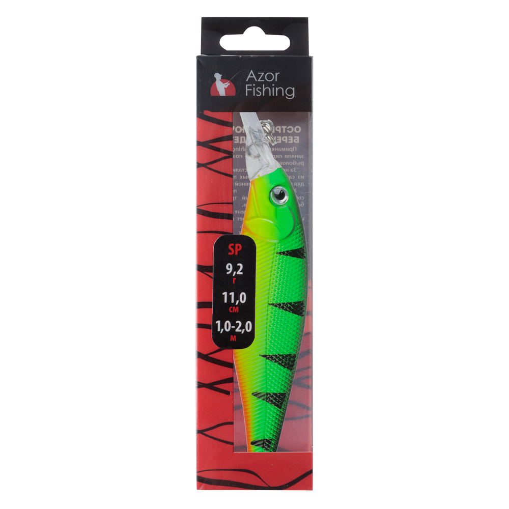 Суспендер, медленно тонущий воблер Дип Шэд Минноу, длина 11см, вес 9гр. Отличная приманка для ловли на на глубинах до 3 метров. При не быстрой проводке и легком твиче, приманка эмитирует небольшую рыбёшку. Подходит для ловли всех типов хищных рыб. Щука, Судак. Возможно использования при ловле троллингом.