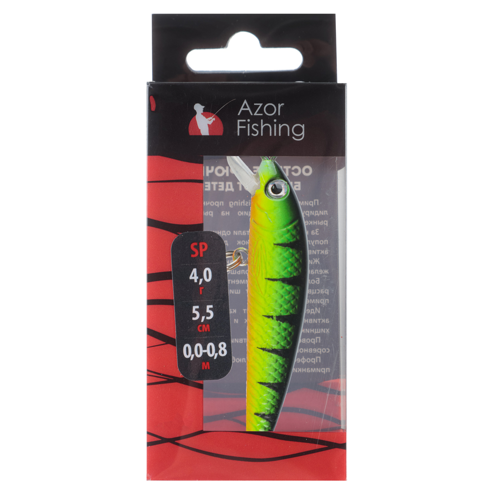 Плавающий воблер Azor Fishing применяется при любой проводке. Если установить его под определенным углом и подтянуть, он нырнет на глубину до двух метров. Причем, чем быстрее рыбак подтягивает, тем глубже погружается приманка. Выбрав медленную проводку, вы заставите воблер булькать и плавать. Среди ключевых преимуществ — сбалансированность и минимальная парусность. Он отлично себя показывает при дальних забросах в ветреную погоду.