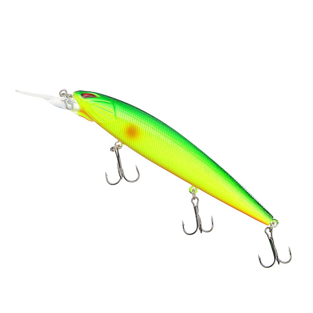Воблер Самурай Дип, длина 14см, вес 18гр, предназначен для дальнего заброса и ловли на троллинг. Не смотря на свой агрессивный вид, отличается спокойной проводкой, а при легком твиче эмитирует прогуливающуюся рыбёшку. Судак и Щука, просто не смогут пропустить такое лакомство, и поклевка не заставит себя долго ждать.