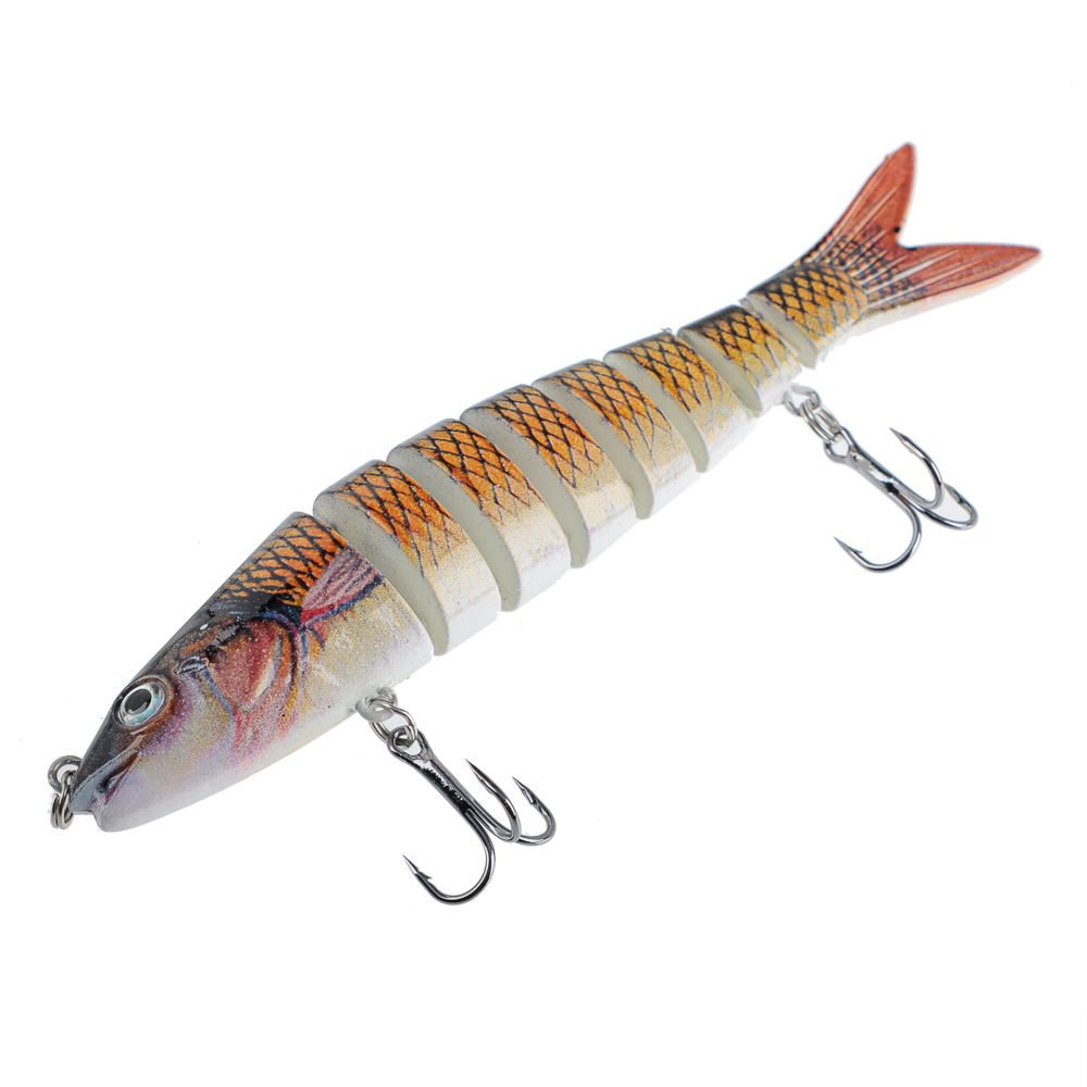 Воблер "Слайдер" состоит из 8-ми секций с прочным соединением. Составные воблеры - это искусственная приманка, точная копия рыбы. Отрегулированный центр тяжести приманки способствует ее правильному положению в воде во время проводки и увеличивает расстояние заброса. Приманка оснащена двумя стойкими к ржавчине тройными крючками, высокой прочности, подходит для использования в пресноводной и соленой воде. Гибкое тело воблера обеспечивает большую свободу крючкам, что существенно снижает риск схода рыбы. Предназначена для ловли на хищных рыб, таких как окунь, судак, щука, плотва, форель и т.д.