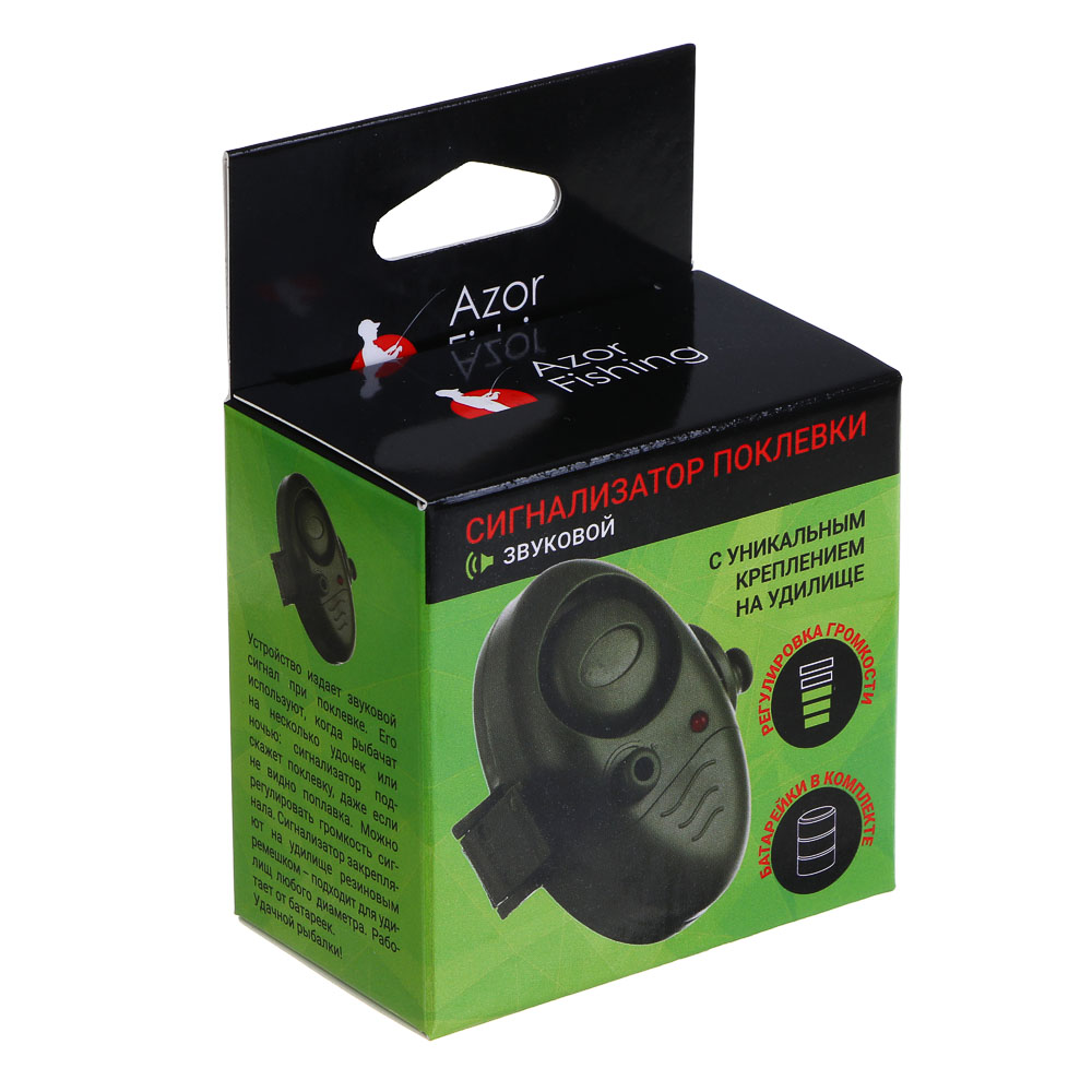 Звуковой сигнализатор поклевки AZOR FISHING - издает звуковой сигнал при поклевке. Его используют, когда рыбачат на несколько удочек или ночью: сигнализатор подскажет поклевку, даже если не видно поплавка. Можно регулировать громкость сигнала. Сигнализатор закрепляют на удилище резиновым ремешком - подходит для удилищ любого диаметра. Работает от батареек. Купите для успешной рыбалки!