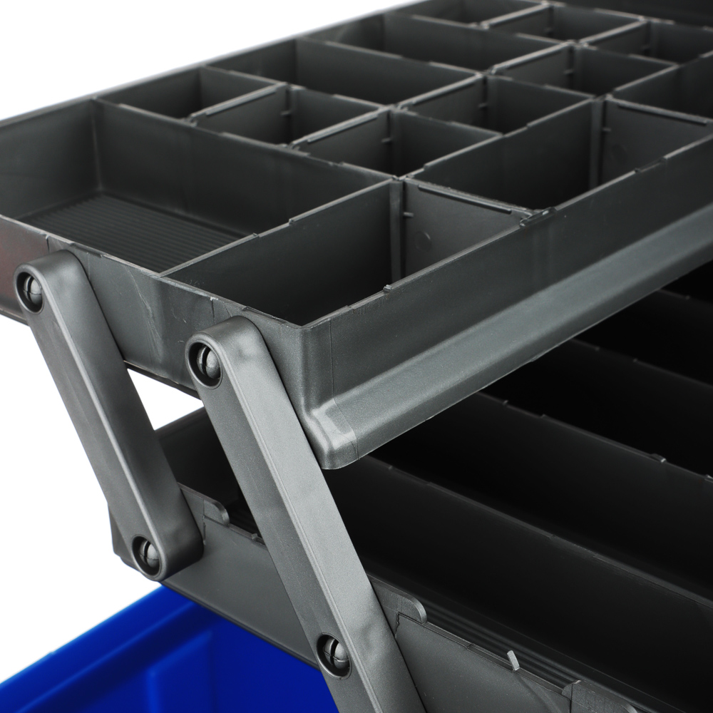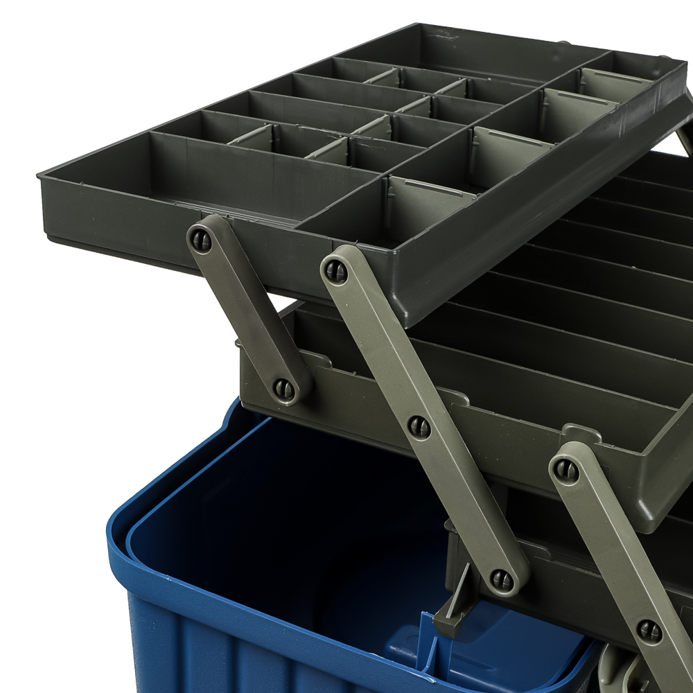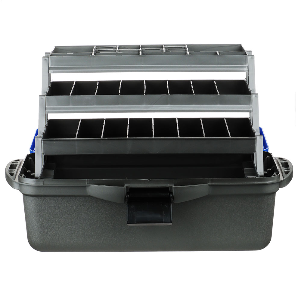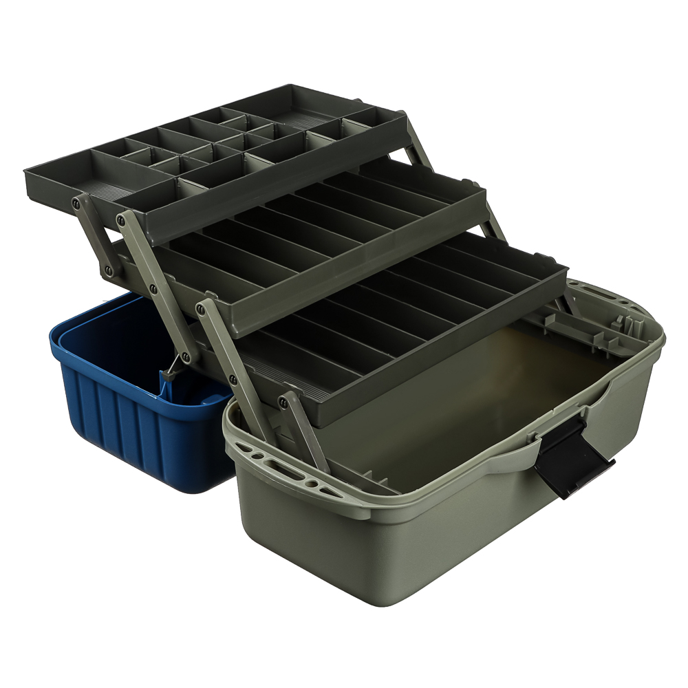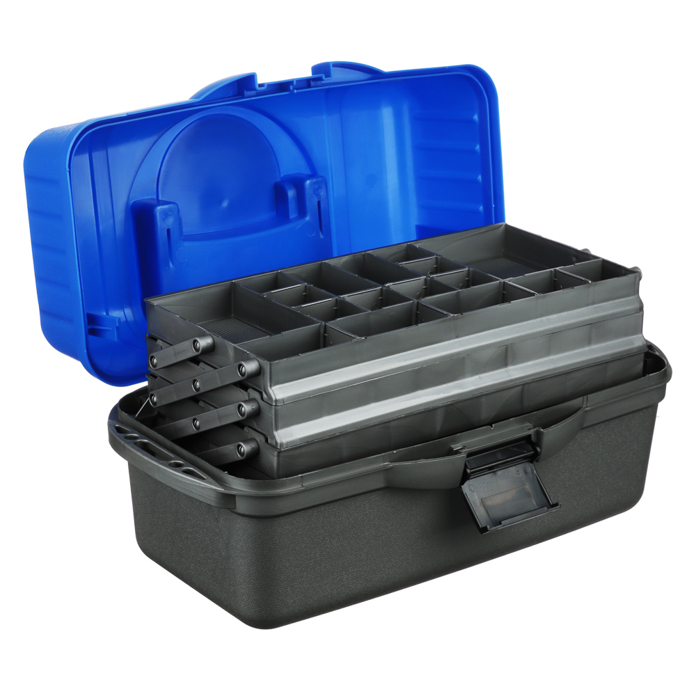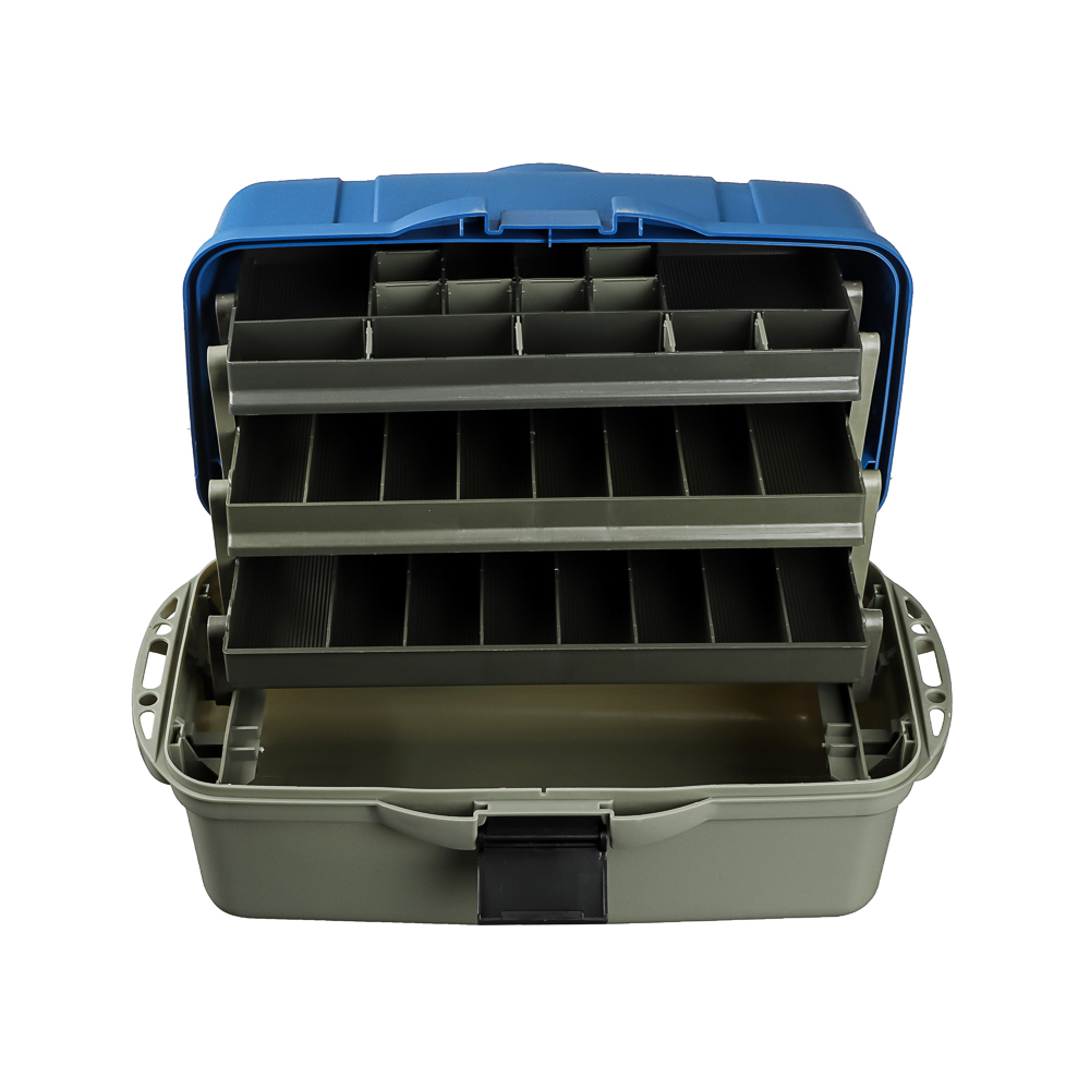 Ящик рыболова трехполочный от AZOR FISHING размером 44x22x24см см изготовлен из прочного и ударопрочного полипропилена. Ящик имеет три полки, которые обеспечивают дополнительное пространство для хранения рыболовных принадлежностей, таких как крючки, приманки, лески и другие необходимые аксессуары. Каждая полка оснащена удобными перегородками, которые позволяют организовать хранение различных предметов рыболовного снаряжения. Полки открываются автоматически вместе с крышкой, которая создает дополнительный упор. Количество секций варьируется от 24 до 34. На дно ящика можно положить 1-3 спиннинговых катушек.