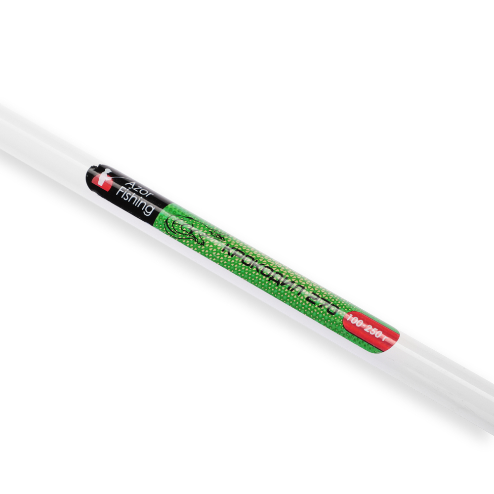 Мощное удилище с усиленными кольцами с не винтовым металлическим соединителем колен. Бланк полнотелый, изготовлен из эпоксидной смолы, что делает удилище несколько тяжелым, но очень прочным. Подходит для ловли крупной рыбы, в том числе сома, а так же для отвесной ловли на пилкеры весом до 250гр. Отлично себя зарекомендовал при троллинговой ловле.