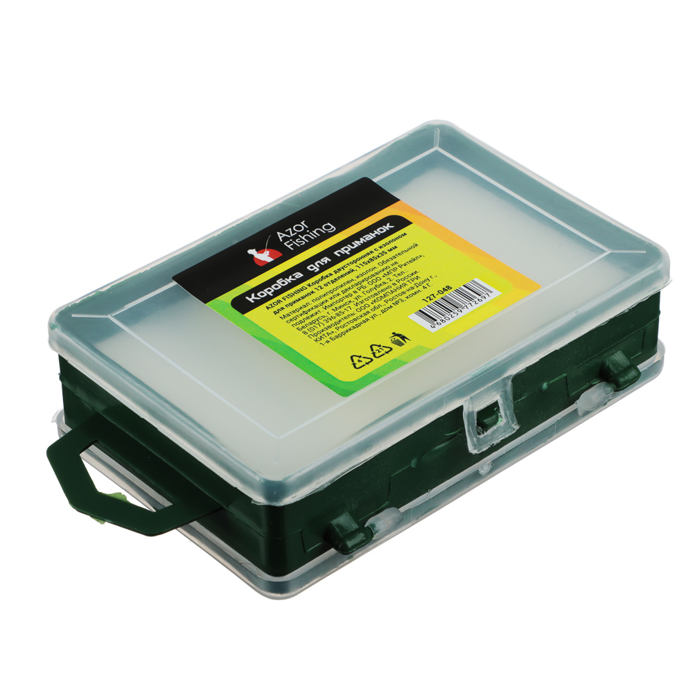 Коробка двусторонняя Azor Fishing с изолоном для приманок с прозрачными крышками – это надежный комфортный и прочный кейс, который станет незаменимым аксессуаром для рыбалки. Имеет 12 отделений для различных видов приманки. Подходит для воблеров, блесен и других типов оснастки. Надежно закрывается и оснащен подвесом для хранения на крючке. Не занимает много места.