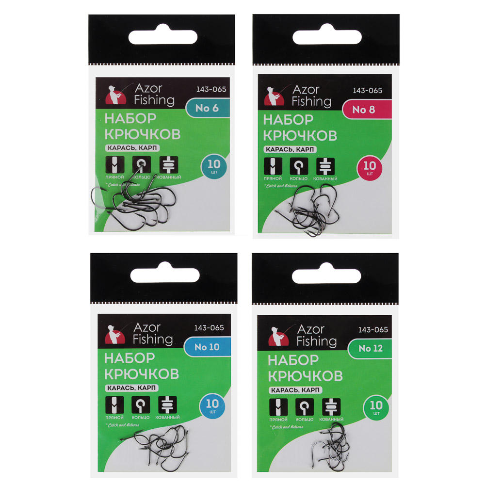 Набор крючков Azor Fishing из углеродной стали отличается отменной прочностью и износостойкостью. Жало сохраняет первоначальную остроту даже при интенсивной эксплуатации. Набор крючков Azor Fishing с высокопрочным покрытием «Черный никель» предназначен для ловли карася, карпа. В ассортименте изделия разных размеров (№ 6,8,10,12).